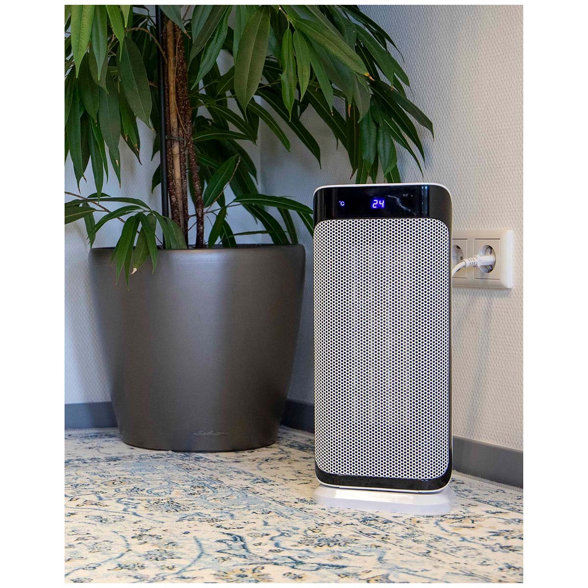 Een stijlvolle oscillerende keramische kachel die ook gebruikt kan worden als ventilator. De kachel is opgebouwd als toren en heeft hierbij een draaifunctie, zo kan ieder stukje van de tent, kamer of caravan verwarmd worden. De kachel heeft 3 verschillende standen, namelijk ventilatiestand en verwarmen 1000w en 2000w. Daarnaast kan de keramische kachel ingesteld worden van 10 graden tot en met 35 graden. Door de uiteenlopende warmteregelaar is deze kachel uitermate geschikt voor alle omstandigheden. De kachel wordt geleverd Inclusief afstandsbediening en LCD display met timerfunctie. Veiligheid staat natuurlijk voorop daarom beschikt de kachel over een overhittingsbeveiliging en omvalbeveiliging. Dit geeft de vrijheid om de kachel aan te laten staan als je ergens anders mee bezig bent. De kachel is ideaal voor gebruik in de caravan, onder de voortent, onder de luifel of in andere kleine vertrekken.