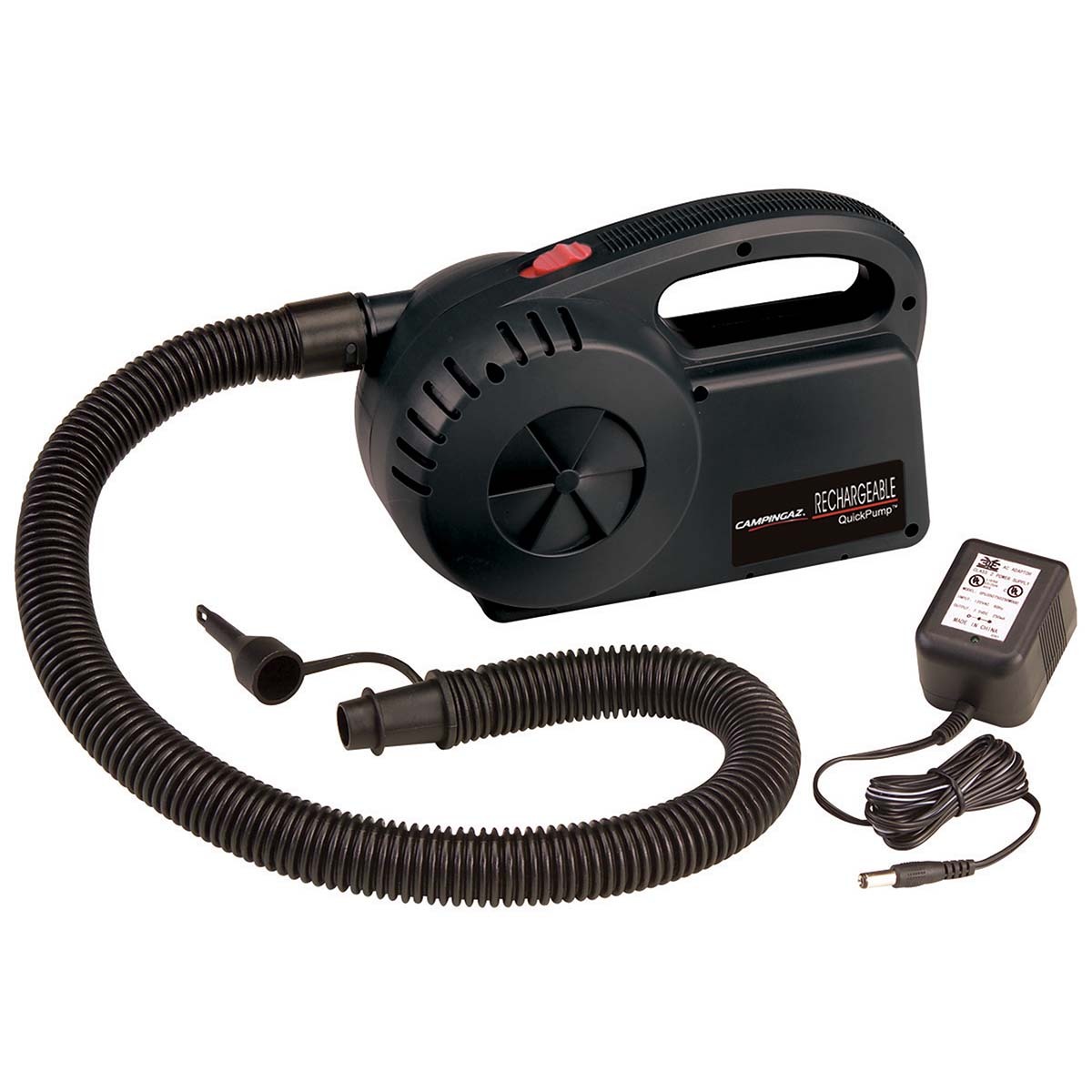 Een oplaadbare elektrische pomp. Een extra krachtige pomp voor het snel opblazen en leeg laten lopen van een luchtbed, opblaasboot, speelgoed etc. Flexibel inzetbaar dankzij de meegeleverde adapter mondstukken. Geschikt voor een 230 Volt aansluiting. Deze pomp beschikt over een luchtstroom van 600 liter per minuut. Wordt compleet geleverd met verloopstukken, adapter en een opberghoes.