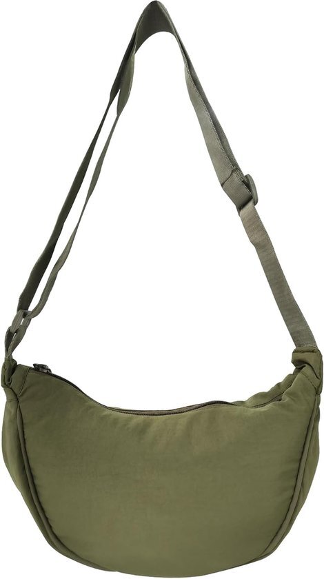 Halve maan schoudertas. Gemaakt van nylon . De tas is voorzien van een ritssluiting en is lichtgewicht.