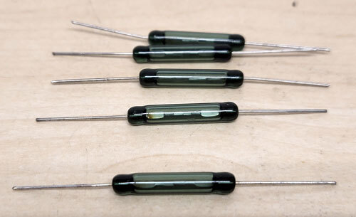 Contact in luchtdicht glazen buisje, werkt met behulp van een magneet.